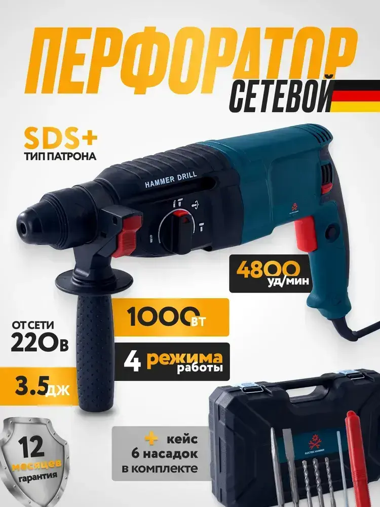 Отбойный молоток электрический,1000Вт, 3.5Дж, SDS+, от сети 220В