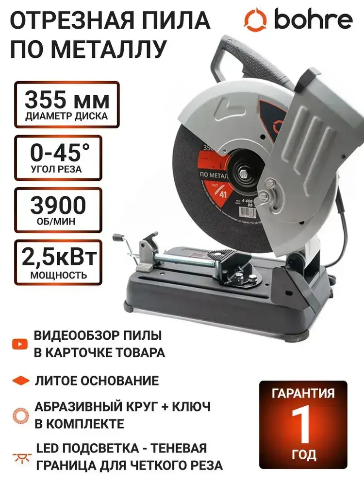 Отрезная пила по металлу Bohre COS-3556 / Монтажная пила по металлу 355/ Отрезной станок