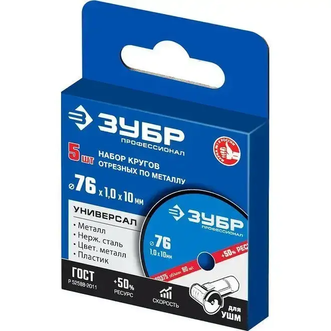 Отрезные круги по металлу ЗУБР X-2 5 шт, 76x1x10 мм, 5 шт 36200-76-1.0-H5_z03