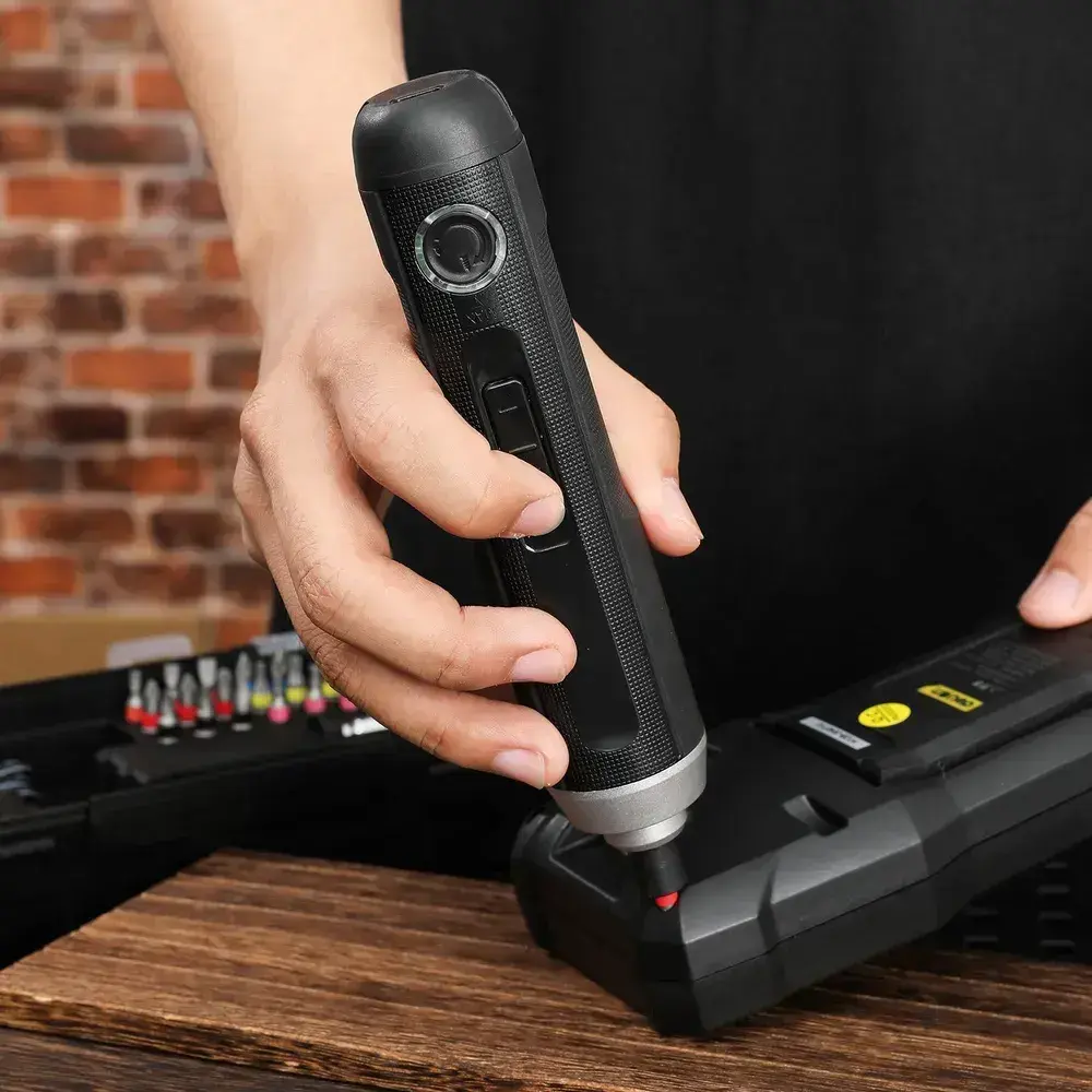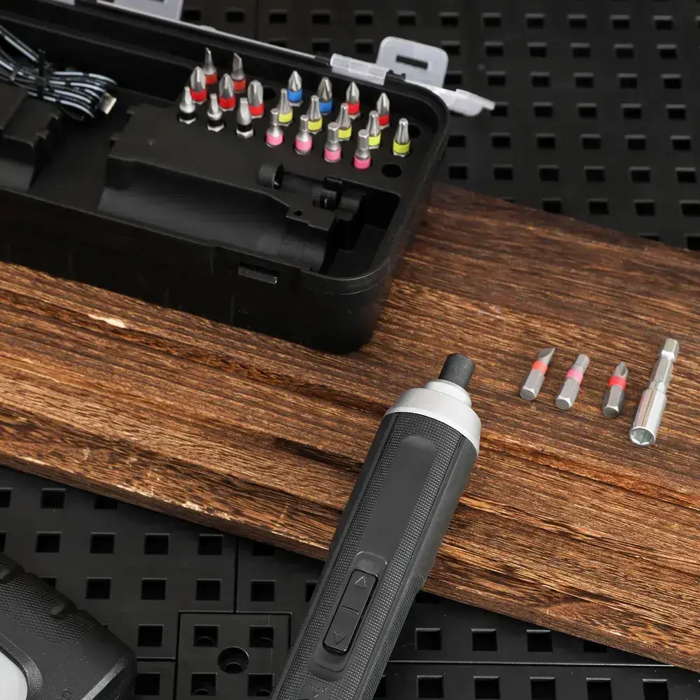 Отвертка аккумуляторная прямая Deli DL-DP04-E1B2 + набор бит 24шт + магнитный удлиннитель (3,6В, 2А/ч, 5Нм,реверс,подсветка, кейс)