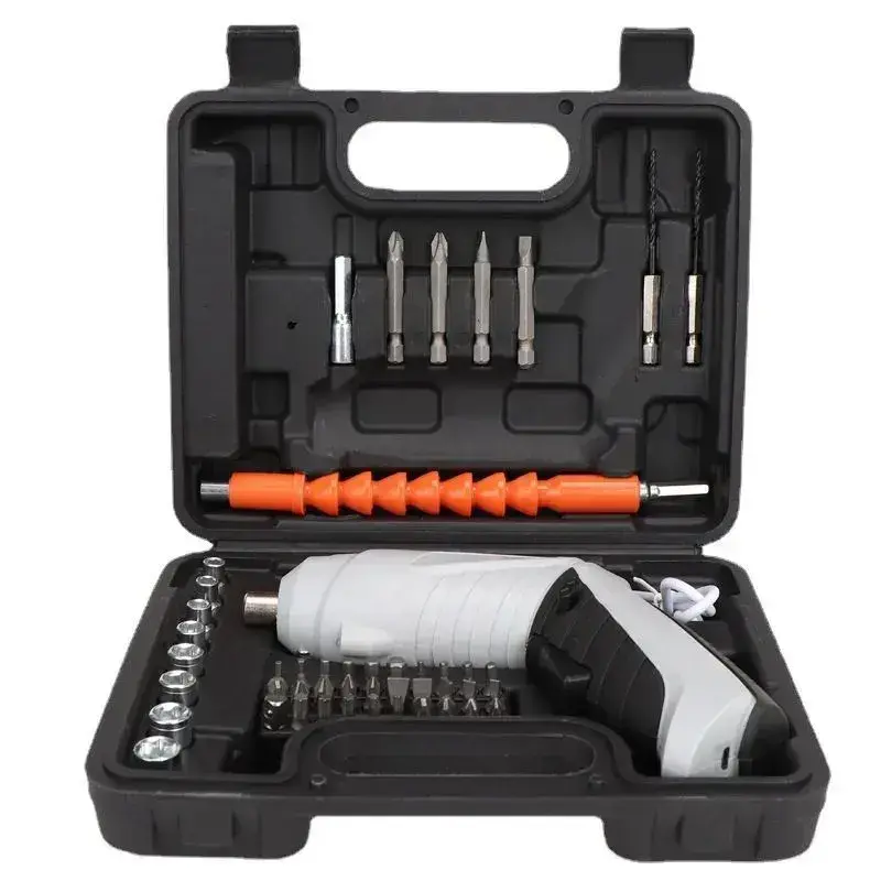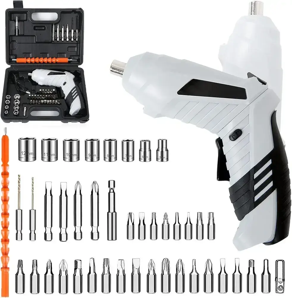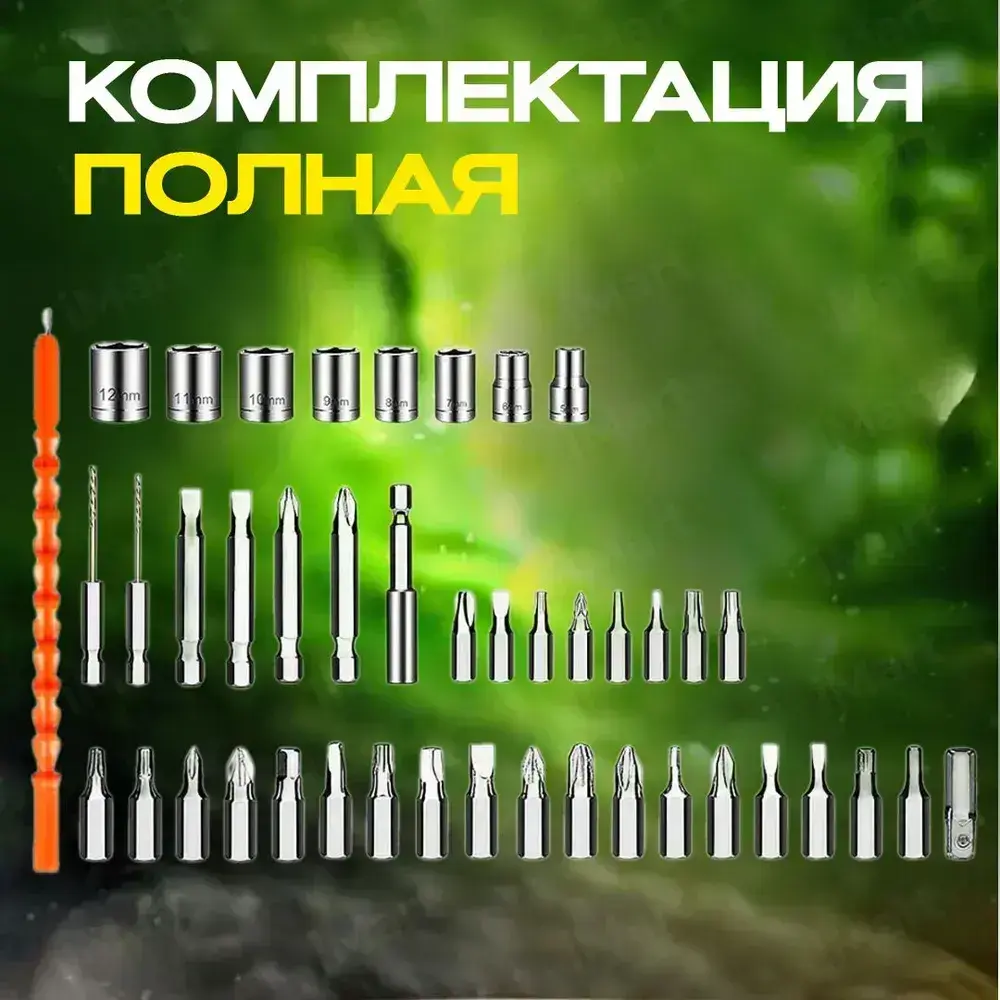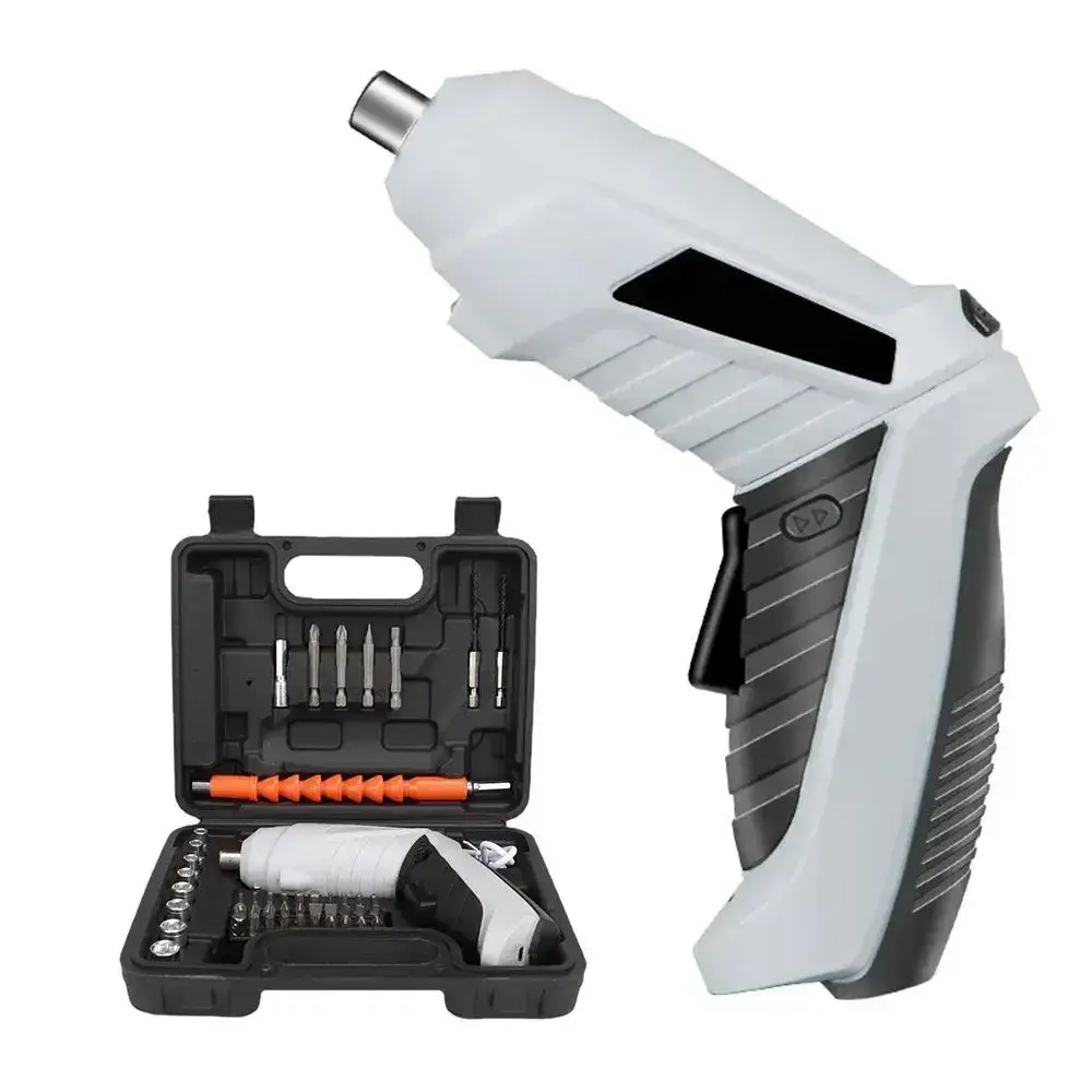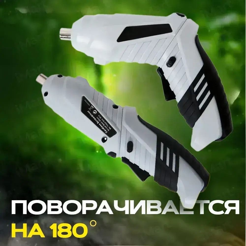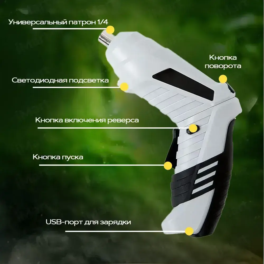 Отвертка электрическая аккумуляторная с набором бит 47 штук. Шуруповерт аккумуляторный. Электроотвертка. Серый
