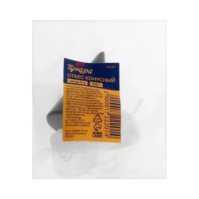 Отвес конусный ТУНДРА, шнур 5 метров, 100 г