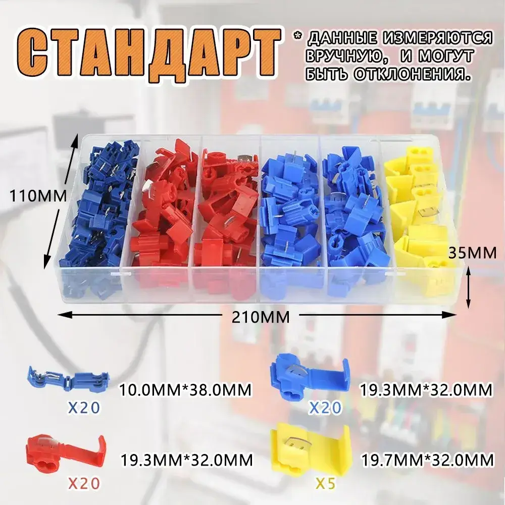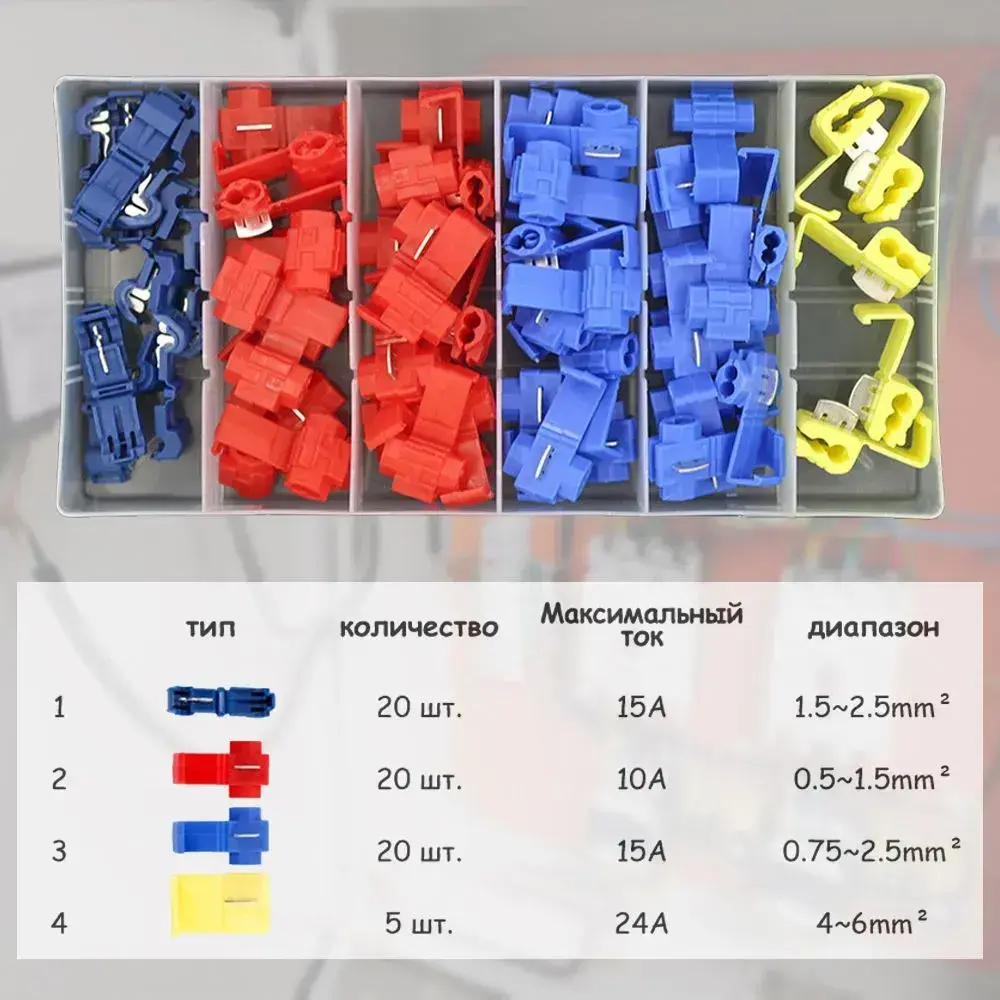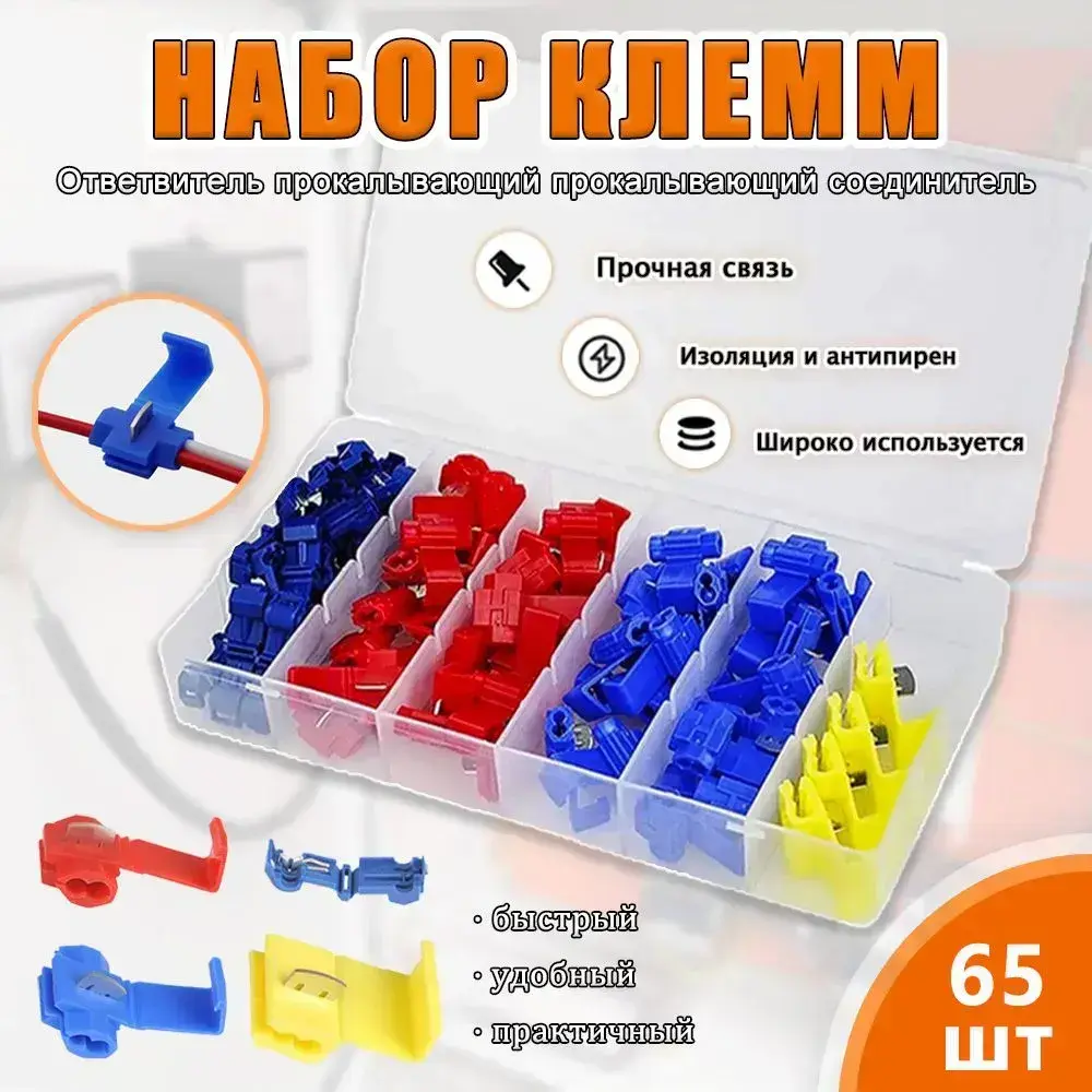 Ответвитель прокалывающий прокалывающий соединитель для проводов (кабельный ответвитель) зажим для соединения проводов набор клемм в контейнер 65 разъемов, для сечения от 0.5-6 мм2