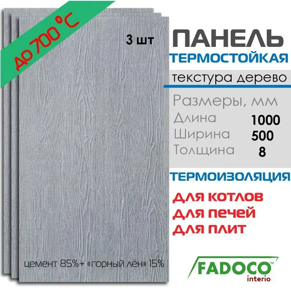 Панель термостойкая FADOCO НГ 1000x500х8 3шт