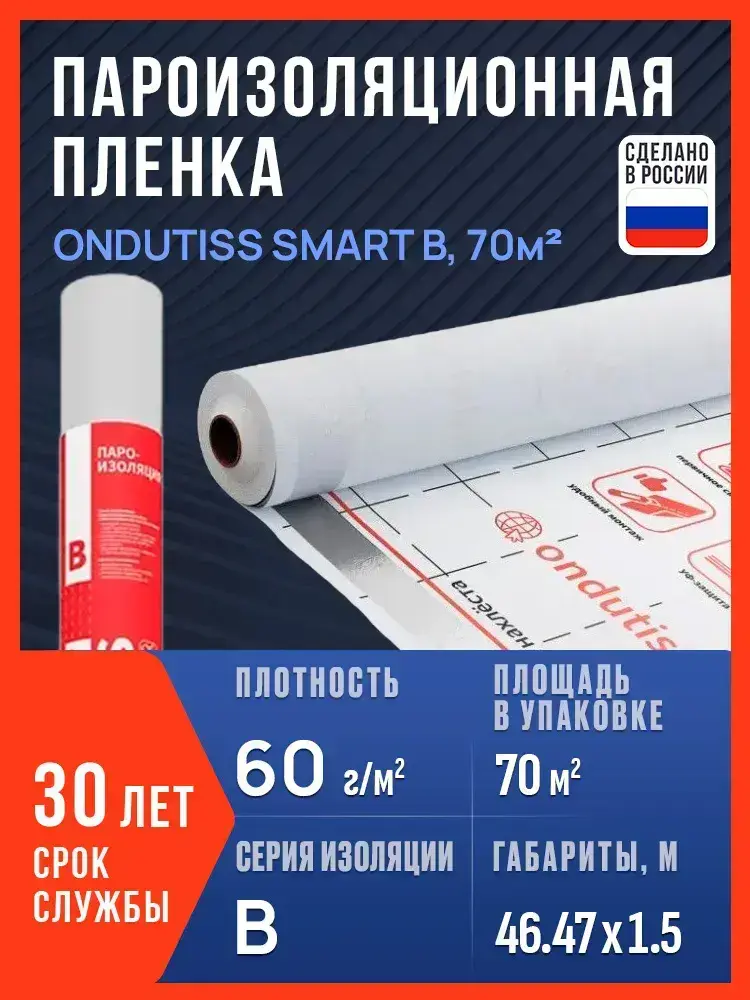 Пароизоляция ONDUTISS SMART B, 70м2 / Пароизоляционная пленка Ондутис СМАРТ B