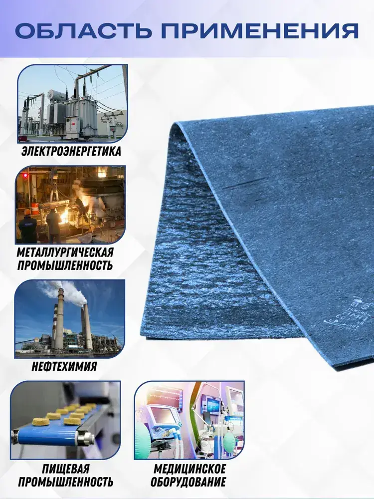 Паронит ПМБ-1 250х250х1 мм (маслобензостойкий, голубой) ГОСТ 481-80