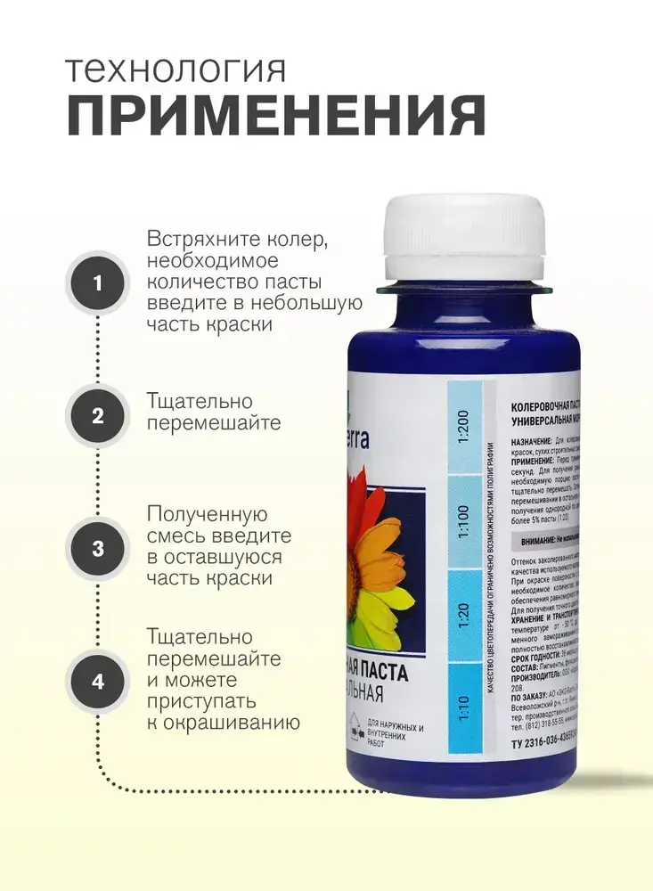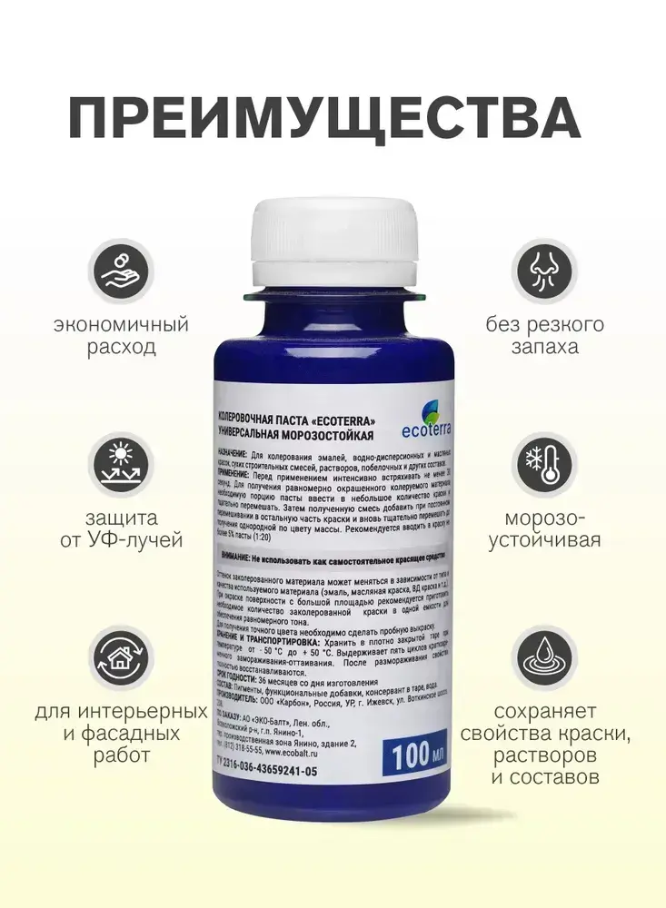 Паста колеровочная универсальная ECOTERRA колер-паста голубой N17 100 мл