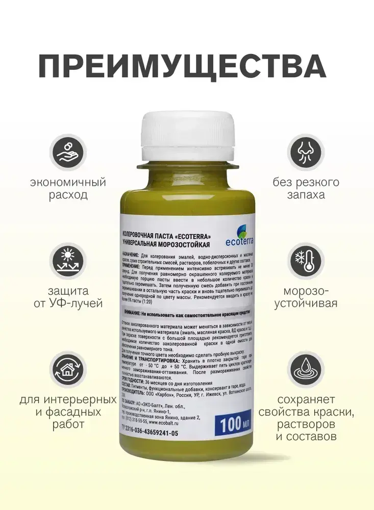 Паста колеровочная универсальная ECOTERRA колер-паста оливковый/хаки N29 100 мл