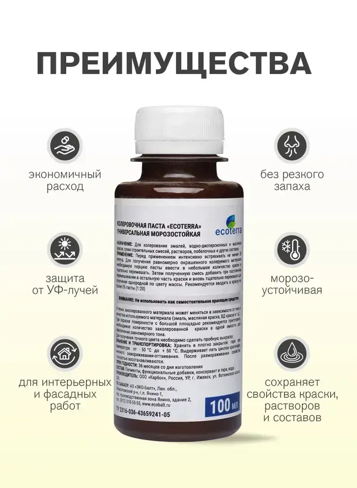 Паста колеровочная универсальная ECOTERRA колер-паста сиреневый N11 100 мл