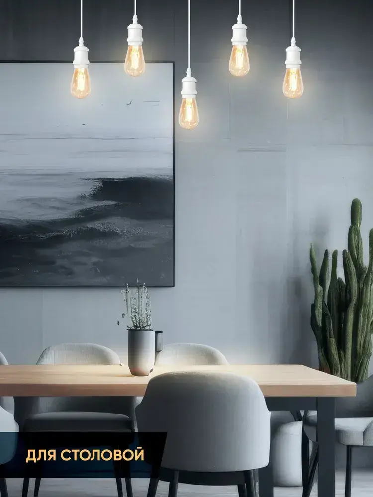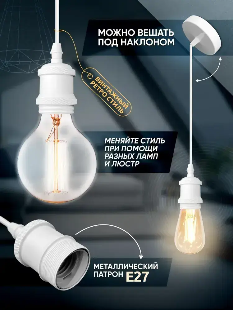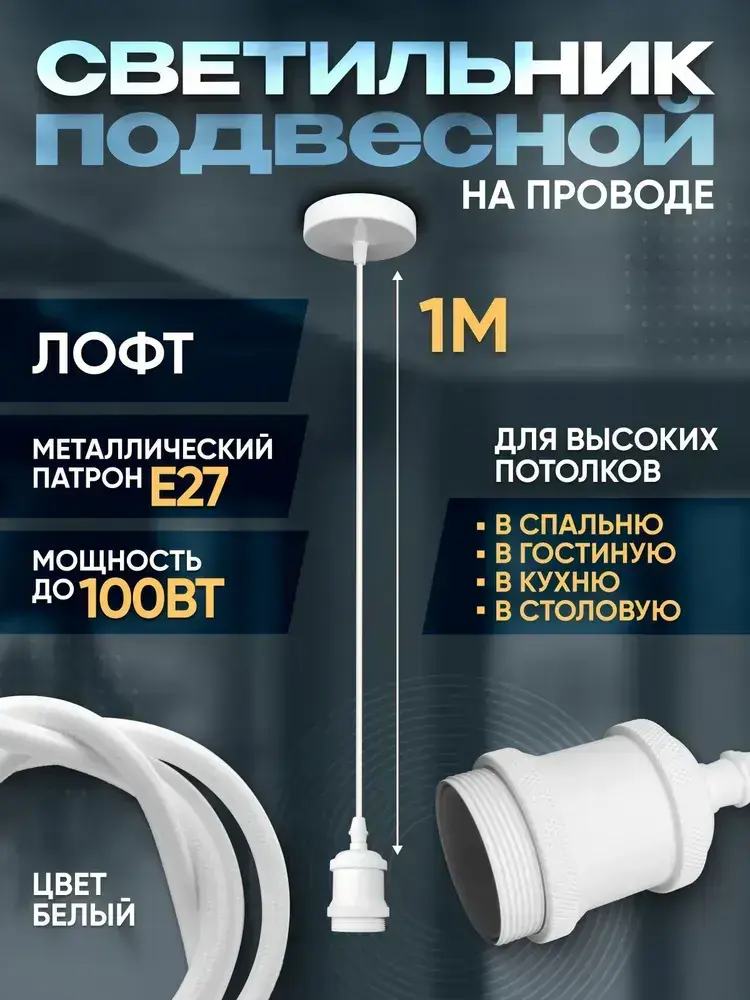 Патрон декоративный подвесной для ламп Е27, Светильник подвесной Лофт, белый