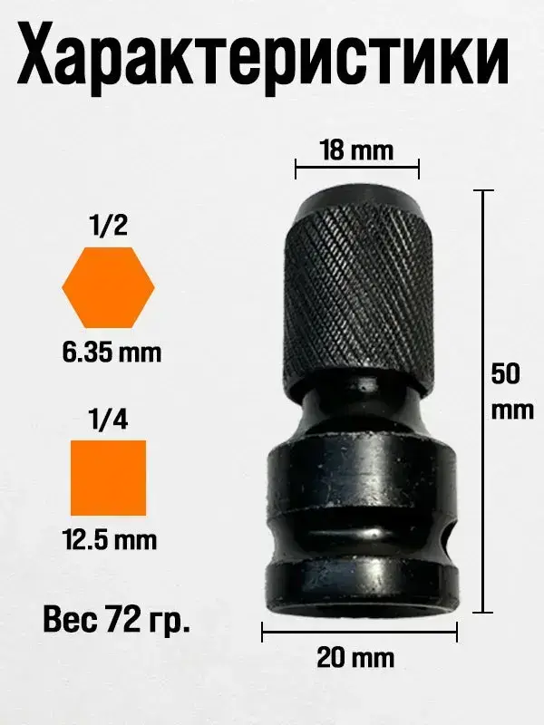Патрон для гайковерта 1/2, адаптер для бит переходник 1/4, насадка на гайковерт, битодержатель 1шт.