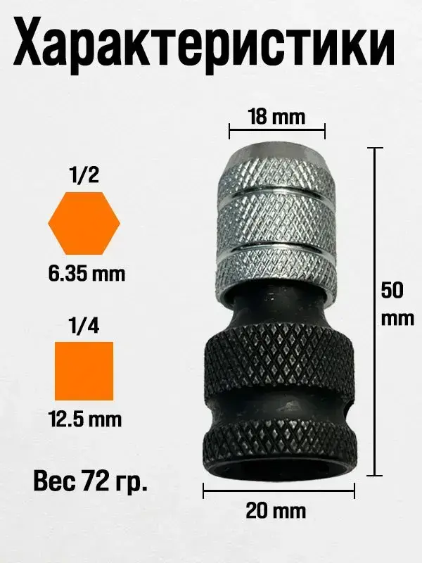 Патрон для гайковерта квадрат 1/2, адаптер для бит 1/4, насадка на гайковерт, переходник битодержатель