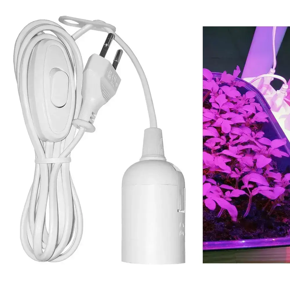 Патрон DORI для лампы E27, подвесной, со шнуром 2м., вилкой и выключателем / удлинитель для рассады, белый