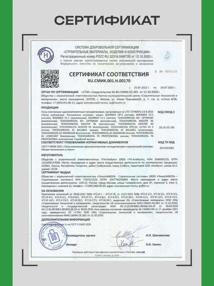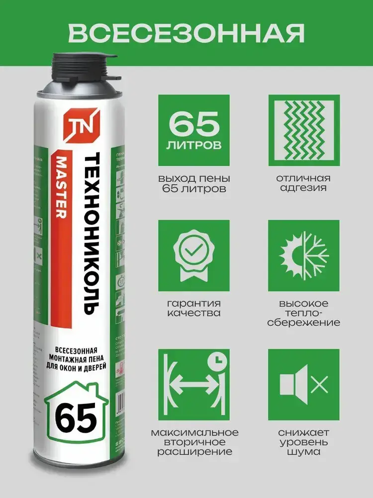 Пена монтажная для пистолета Технониколь MASTER 65 всесезонная, 1 штука