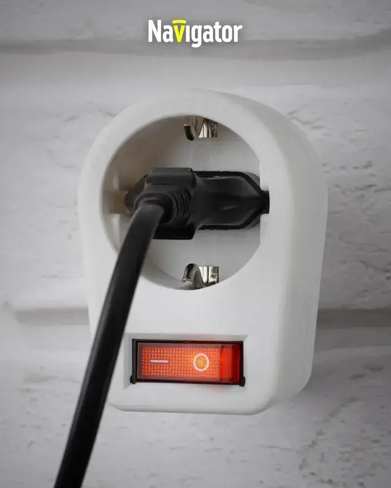 Переходник для розетки Navigator 94 669 NAD-1E-СS-WH, на 1 розетку, с выключателем