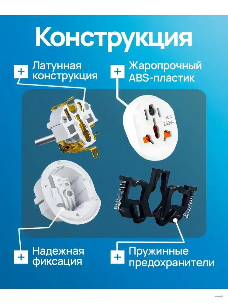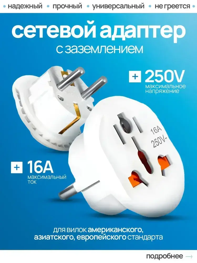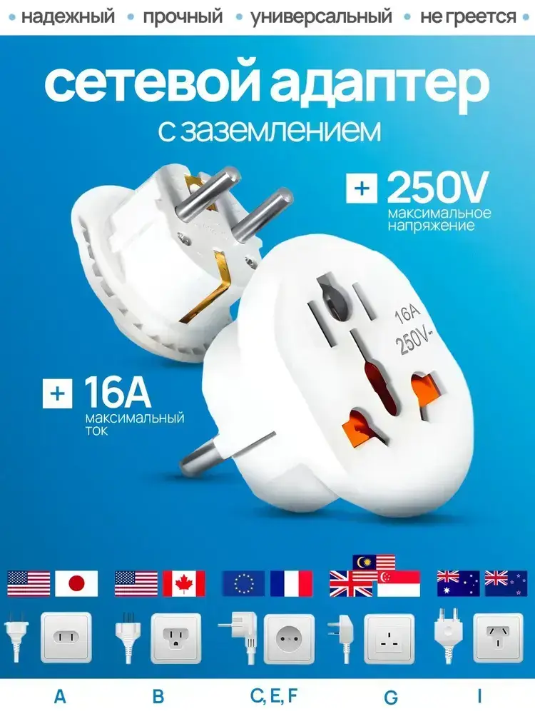 переходник с китайской вилки на российскую , переходник на евровилку , белый Латунь! R74S 16А Сетевой адаптер для путешествий