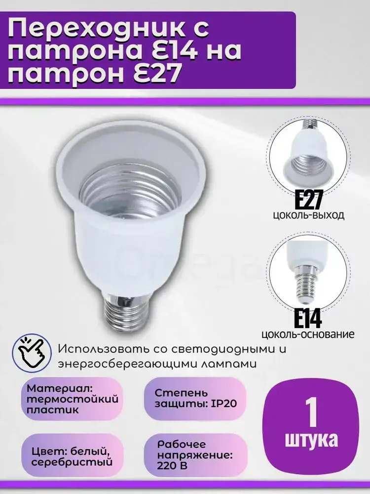 Переходник с патрона Е14 на патрон Е27 для светодиодных ламп, 1 шт.
