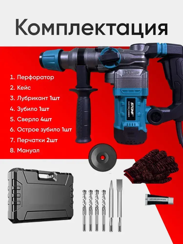 Перфоратор электрический профессиональный, 2200 вт, энергия удара 13 Дж