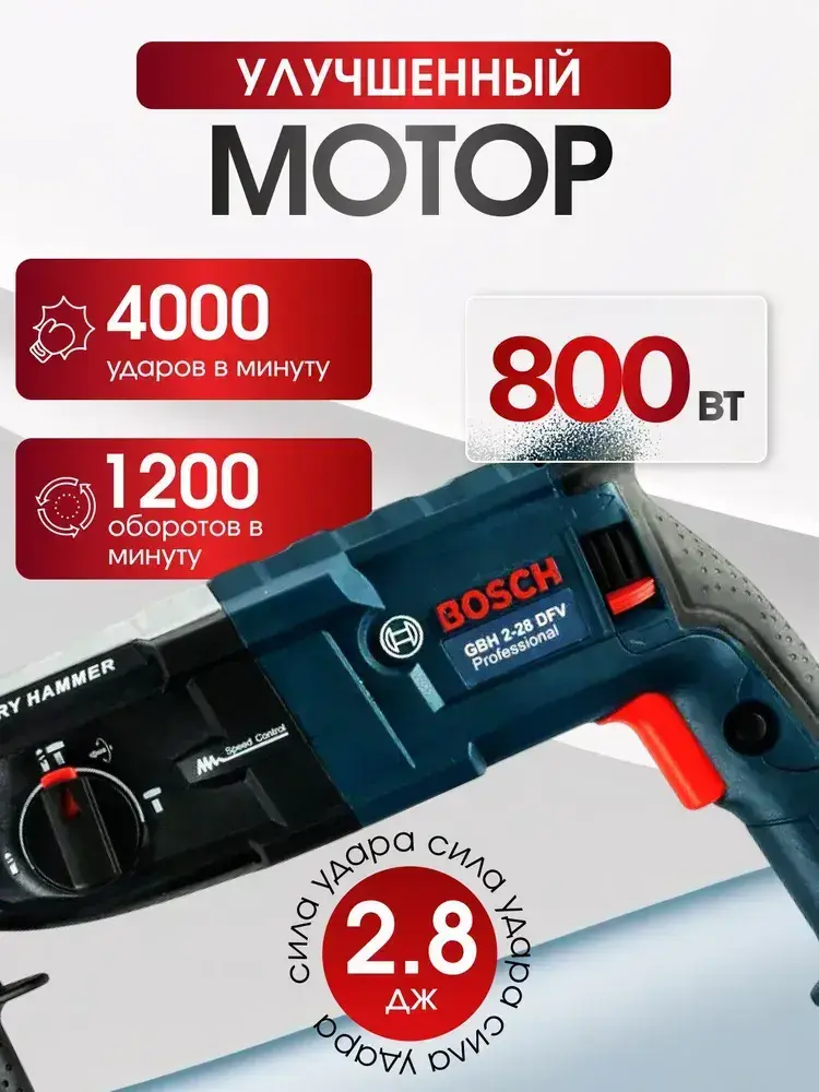Перфоратор электрический сетевой, 800ВТ, в кейсе, профессиональный