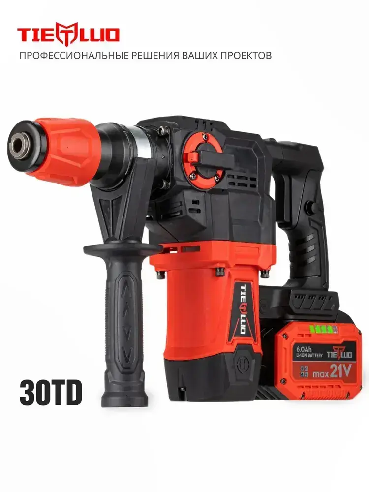 Перфоратор TIELLIO 30TD аккумуляторный бесщеточный в кейсе, 21В, 2 АКБ LI-ION 6Ач, SDS Plus