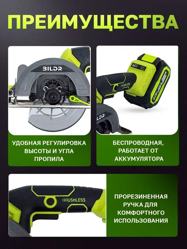 Пила циркулярная аккумуляторная дисковая BILDR