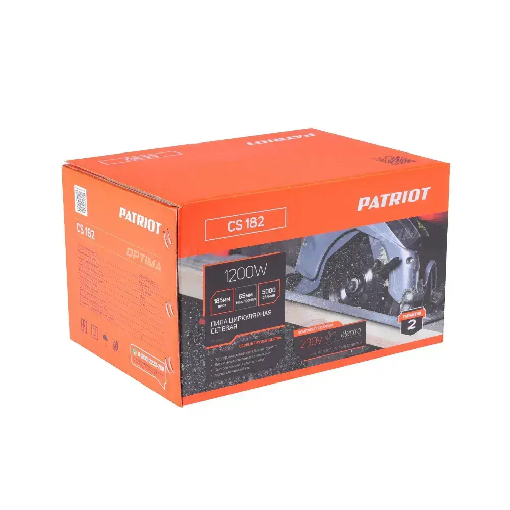Пила циркулярная PATRIOT CS 182, 1200Вт, диск 185мм, глубина пропила 65мм
