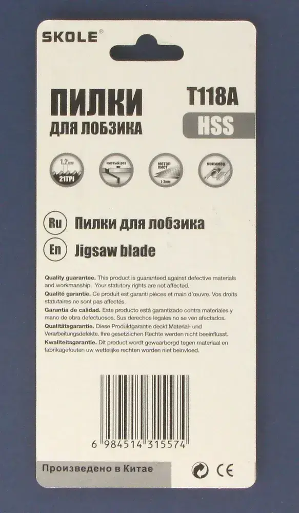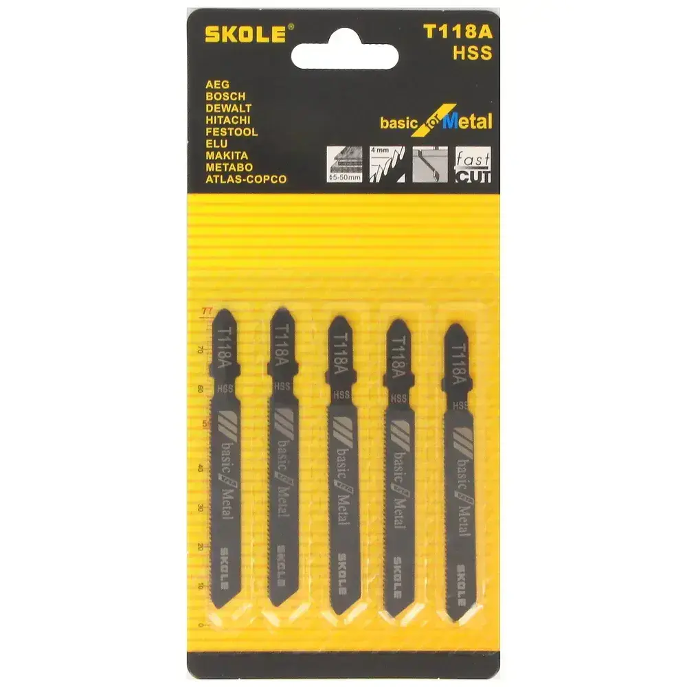 Пилка для лобзика 5шт по металлу T118A чистый ровный рез Skole