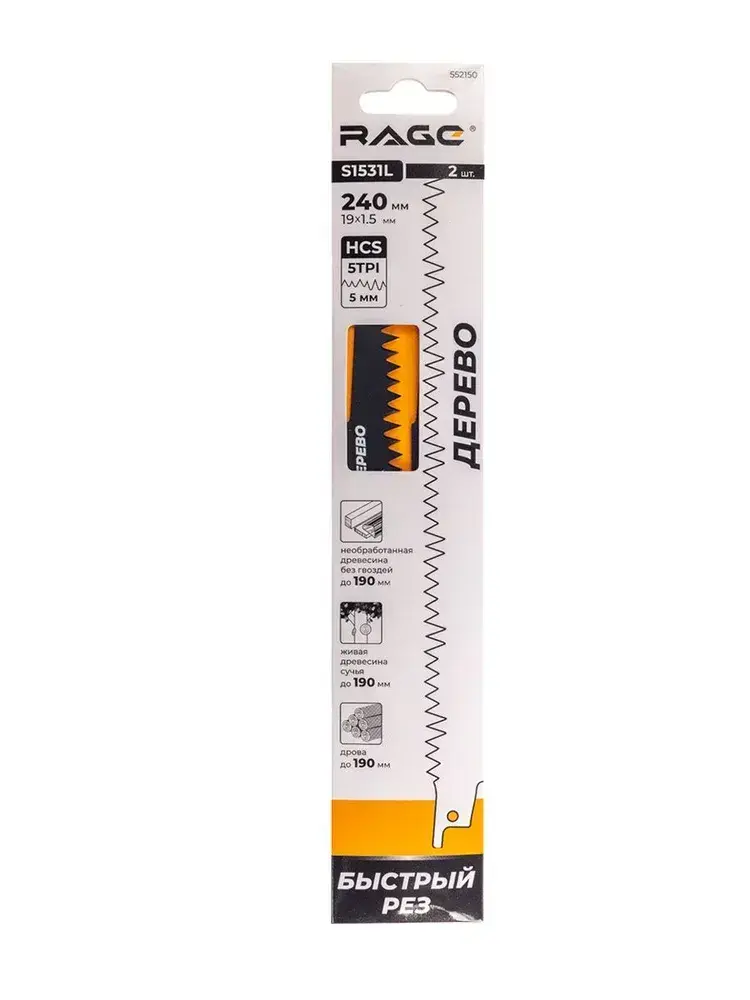 Пилка для сабельной пилы по дереву S1531L 240 мм шаг 5 мм 2 шт RAGE