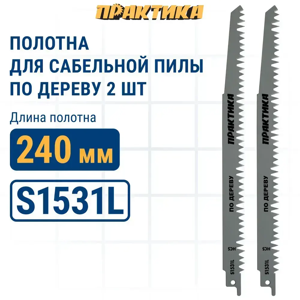Пилки для сабельной пилы по дереву, ДСП ПРАКТИКА S1531L HCS, шаг 5 мм, длина 240 мм, 2 шт