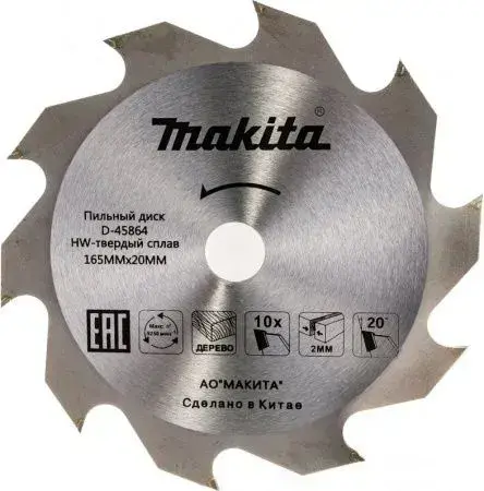 Пильный диск Макита Standart 165х20х2.0х10T (D-45864)