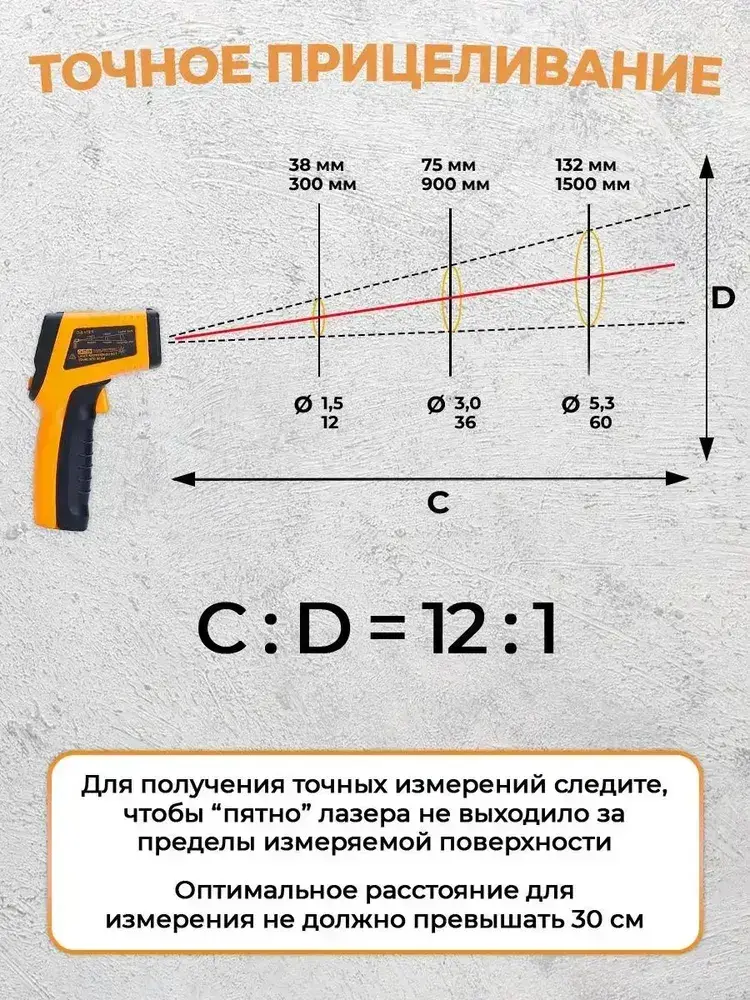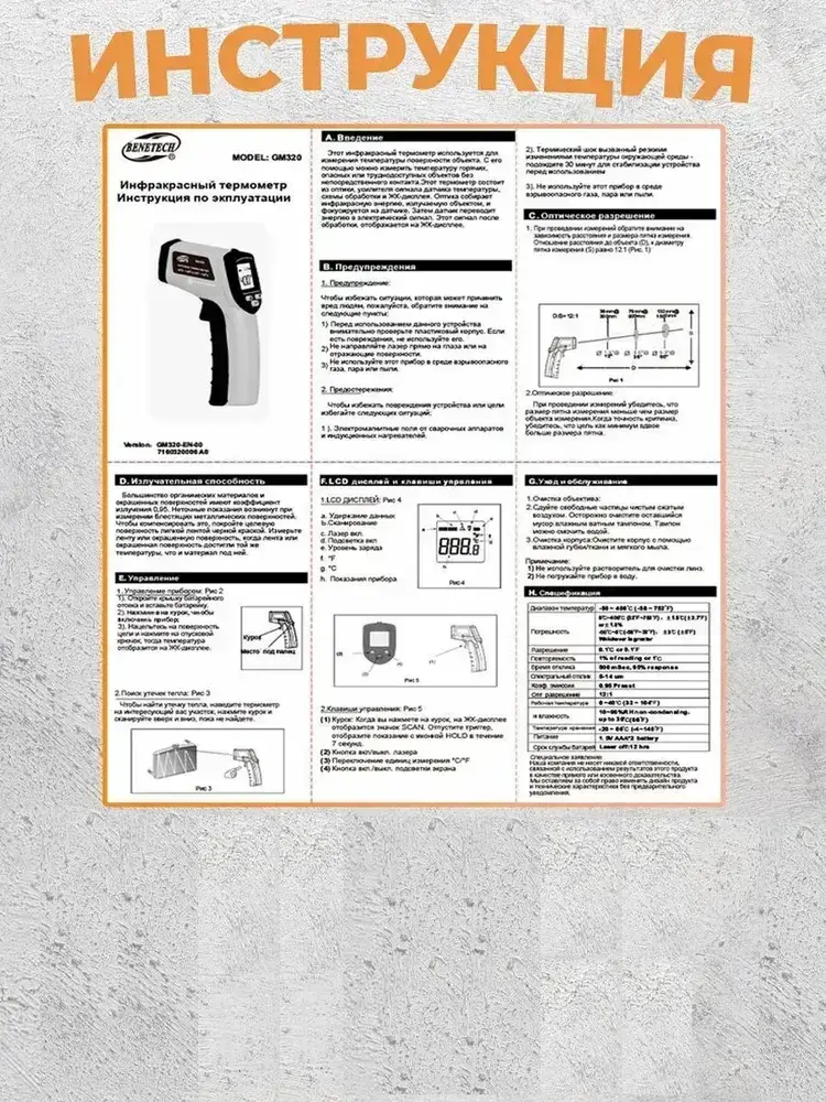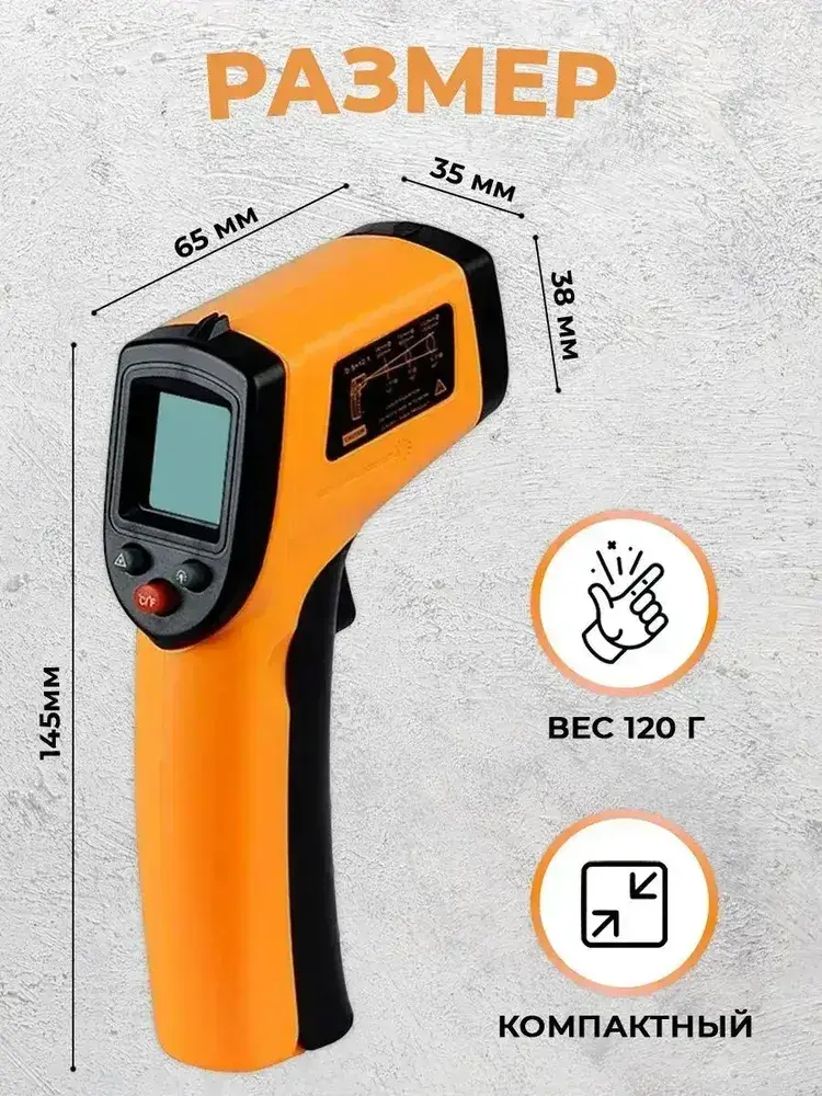 Пирометр Benetech GM320 бесконтактный, инфракрасный / Термометр цифровой / Лазерный измеритель температуры
