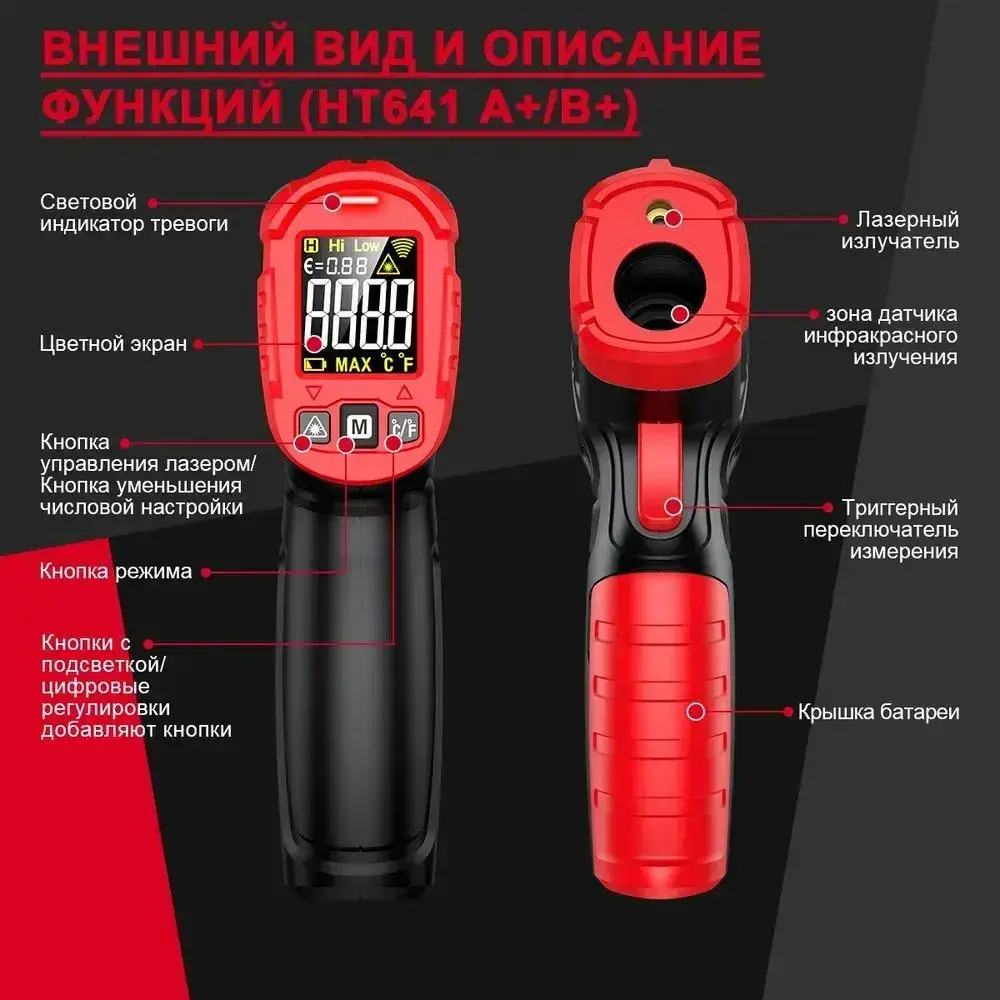 Пирометр HT641B+ Habotest бесконтактный инфракрасный термометр -50 град ... +600 град