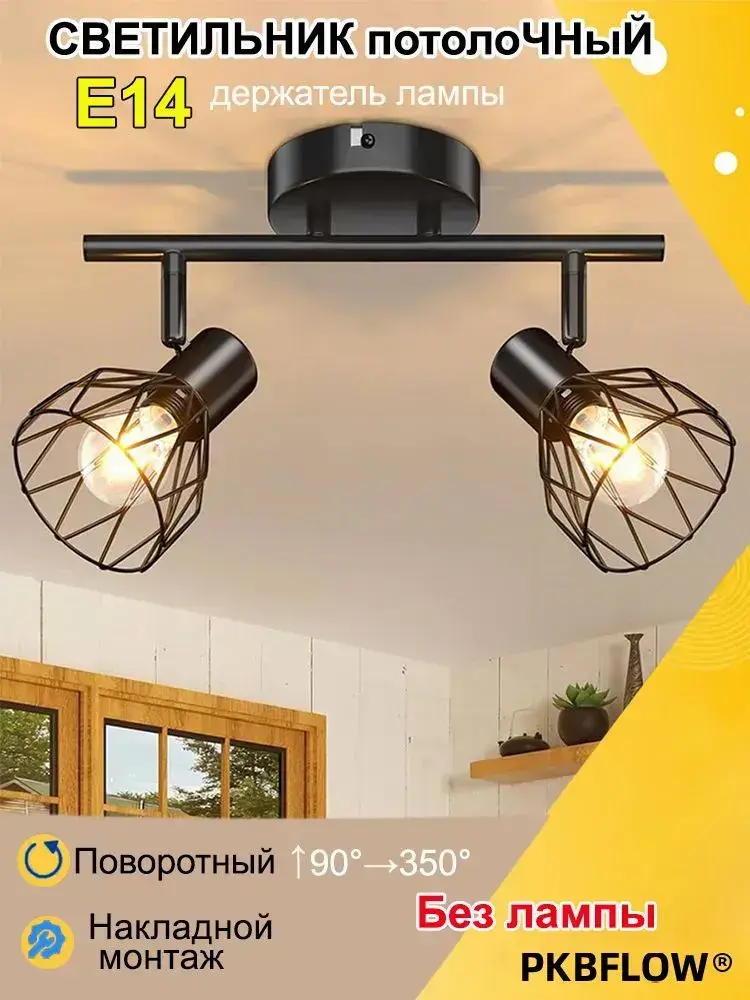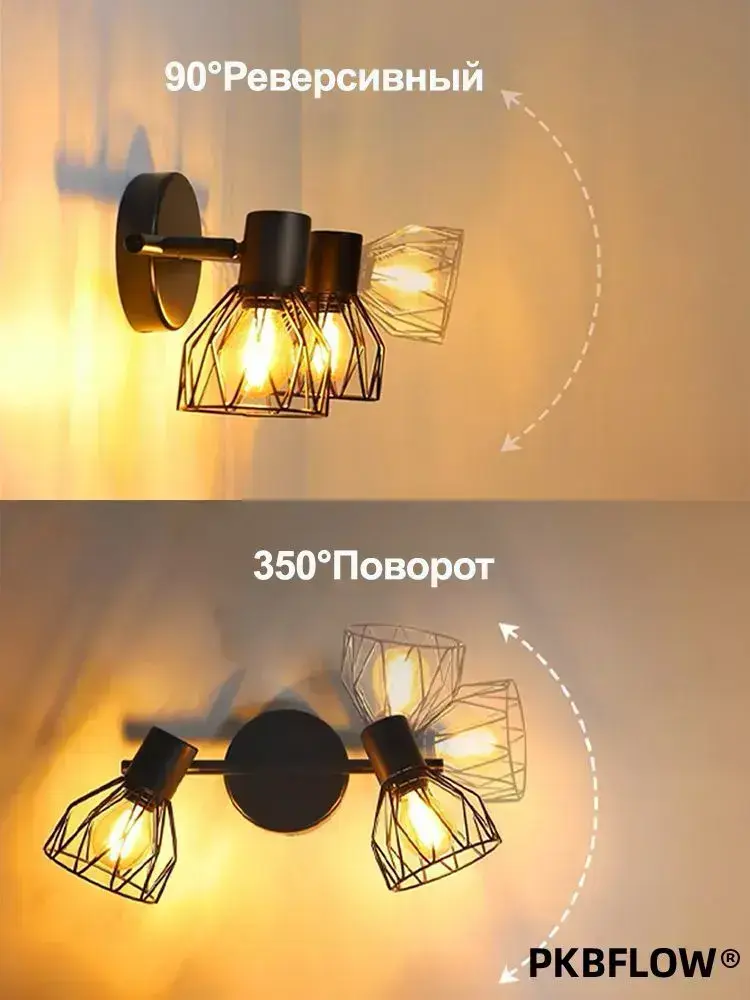 PKBFLOW бра настенные светильники 2 плафона, Светильник настенный, ретро лампа для освещения спальни, E14, 40Вт