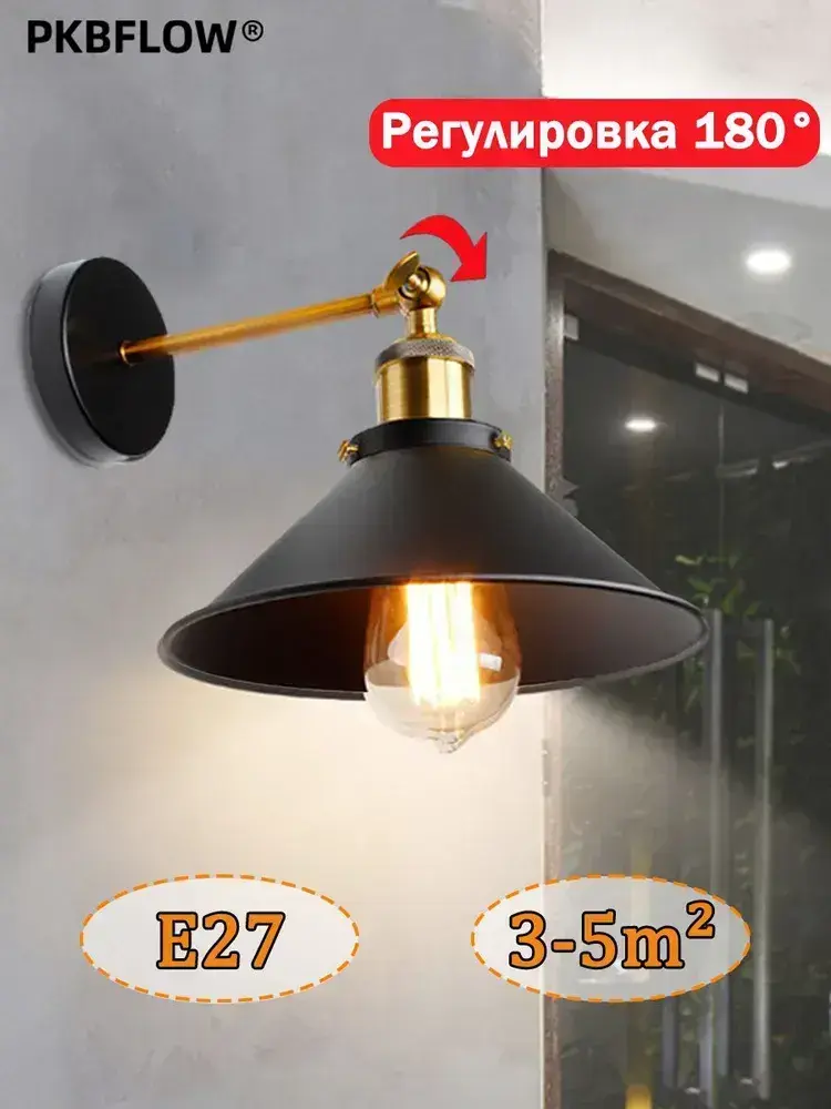 PKBFLOW Бра настенный,Настенный светильник лофт для спальни и гостиной ,E27