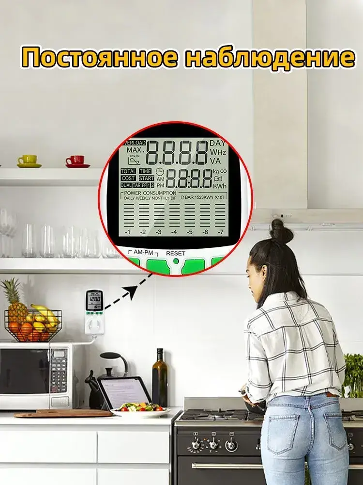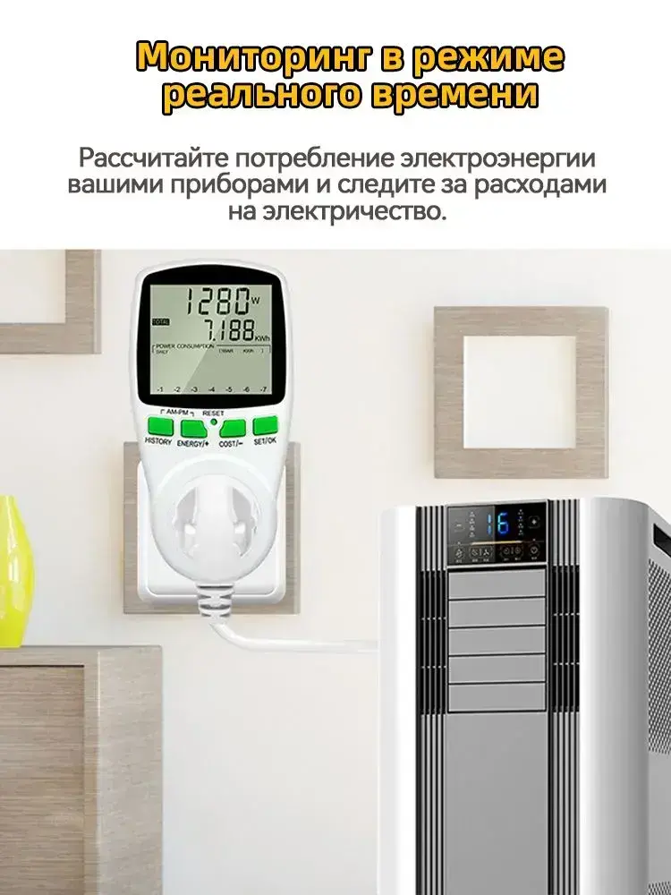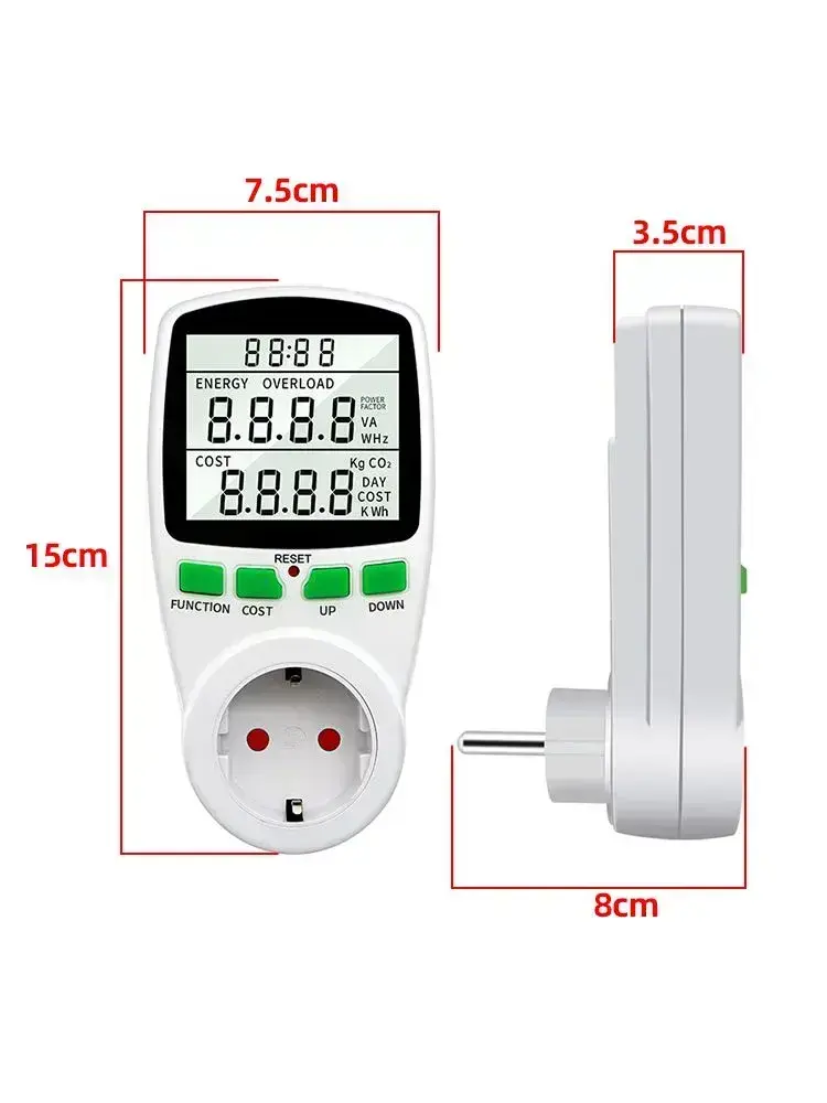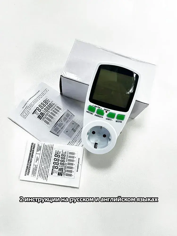 PKBFLOW Компактный цифровой ваттметр в розетку 220 В/ амперметр/ Co2 метр/ цифровой ЖК-счетчик энергии, счетчик потребления электроэнергии кВт-ч,калькуляция себестоимости Инструкции на русском языке