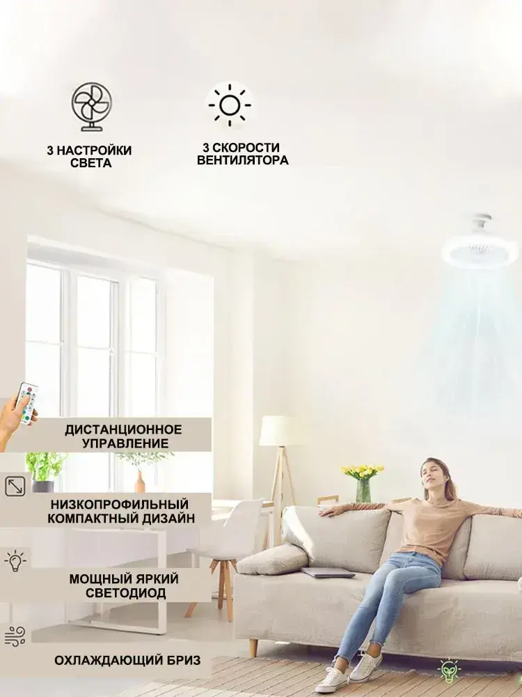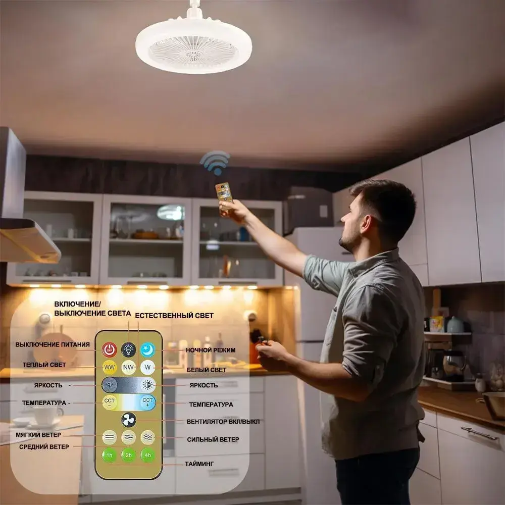 PKBFLOW Люстра вентилятор с подсветкой и дистанционным управлением E27 / потолочный светильник с вентилятором
