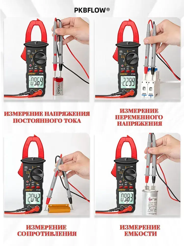 PKBFLOW Мультиметр и тестер цифровой, токовые клещи, Строительный/измерительный инструмент для ремонта и проводки.клещевой амперметр.С щупами