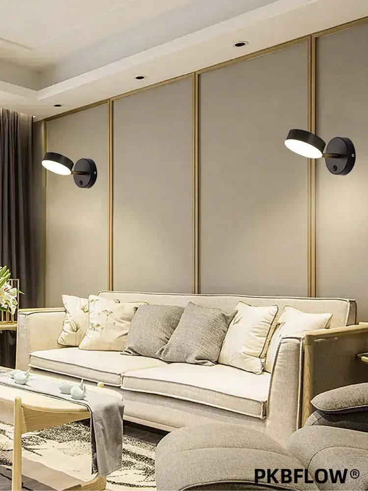PKBFLOW Светильник настенный,с выключателем, трехцветный свет, 220V, черный