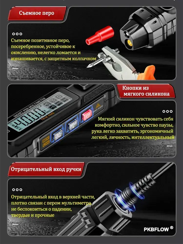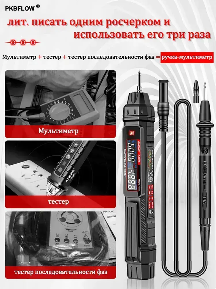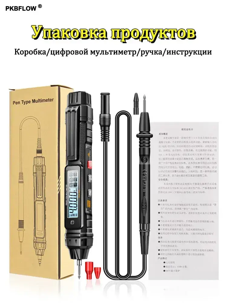 PKBFLOW Цифровой мультиметр, профессиональный прибор с ручным подсчетом 4000 ом, бесконтактный автоматический измеритель напряжения переменного/постоянного тока, тестер диодов;Обновленная версия A3005
