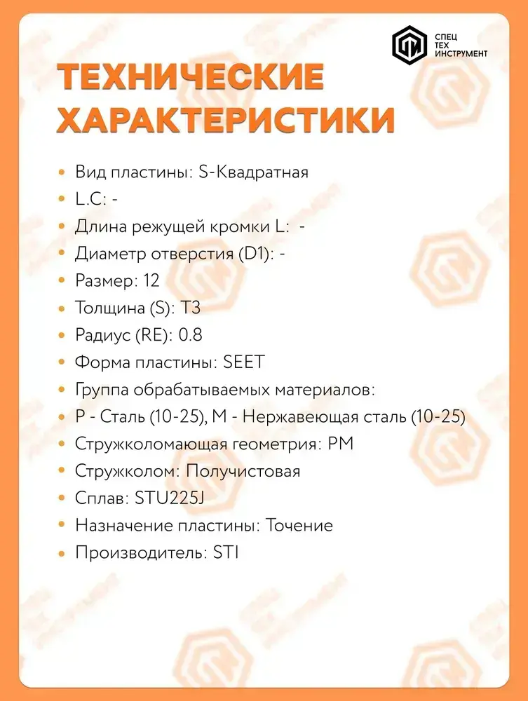 Пластина SEET120308PER-PM STU225J STI 1 штука СпецТехИнструмент
