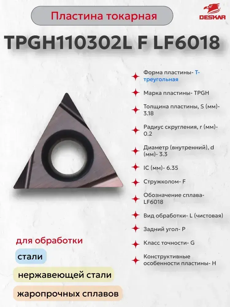 Пластина сменная TPGH110302L F LF6018 (1 шт.) Deskar