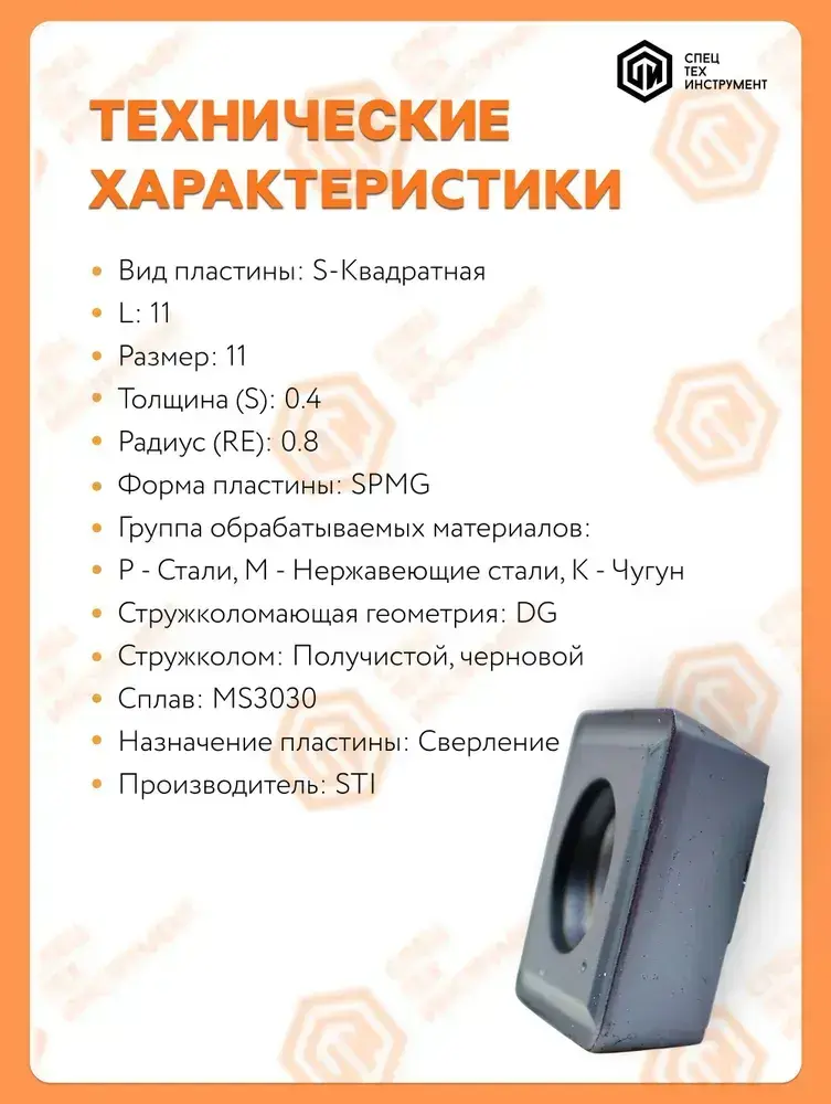 Пластина SPMG110408-DG MS3030 STI 1 штука СпецТехИнструмент