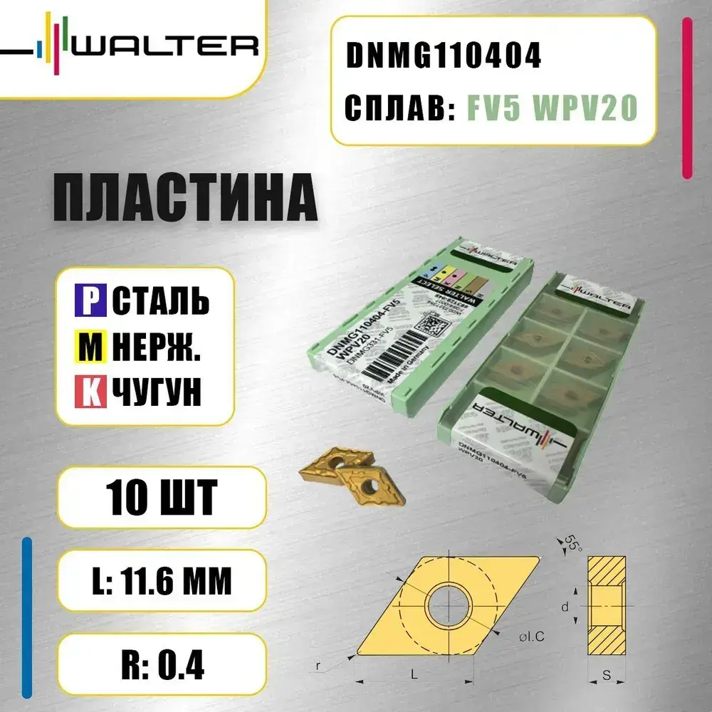 Пластина Walter DNMG110404 FV5 WPV20 (10 шт.)