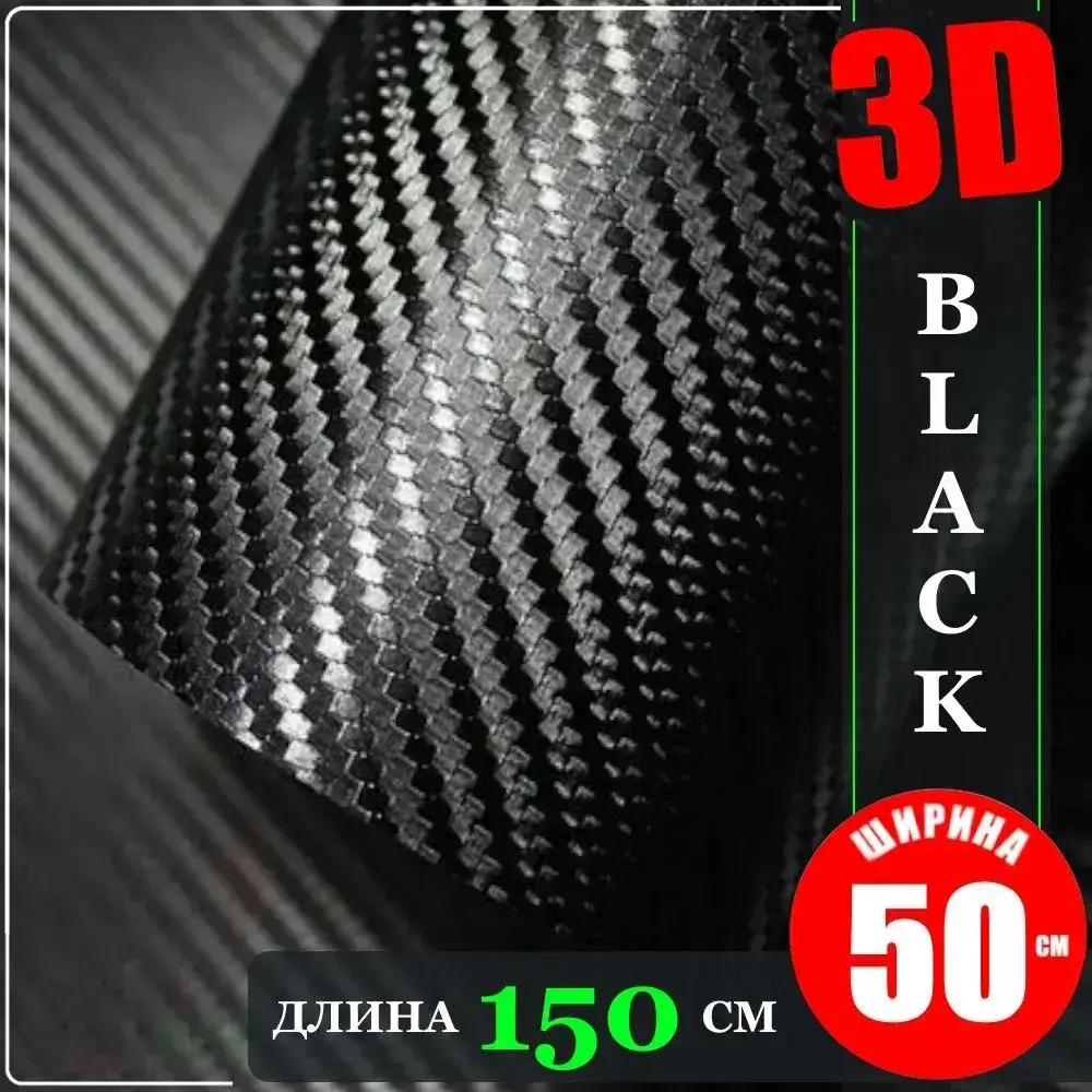 Пленка самоклеющаяся Черная Карбон 3Д для авто, мебели и дизайна (50 см x 152 см)
