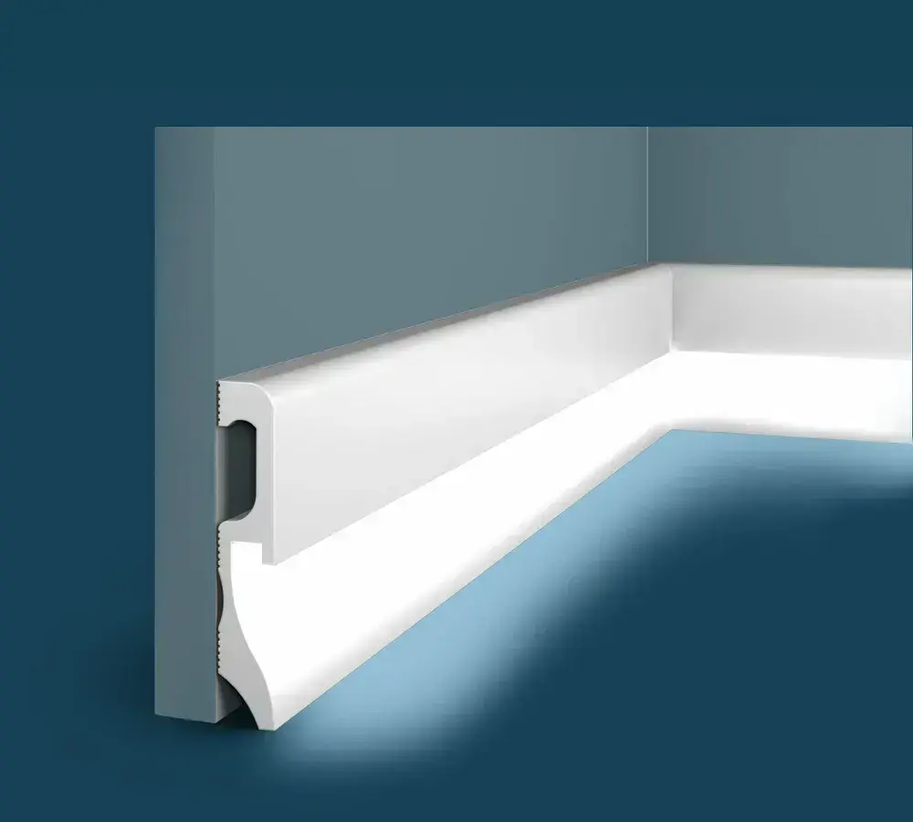 Плинтус под скрытое освещение 100х18х2000мм Cosca PX033 Экополимер. Плинтус с пазом для светодиодной ленты для скрытого освещения.