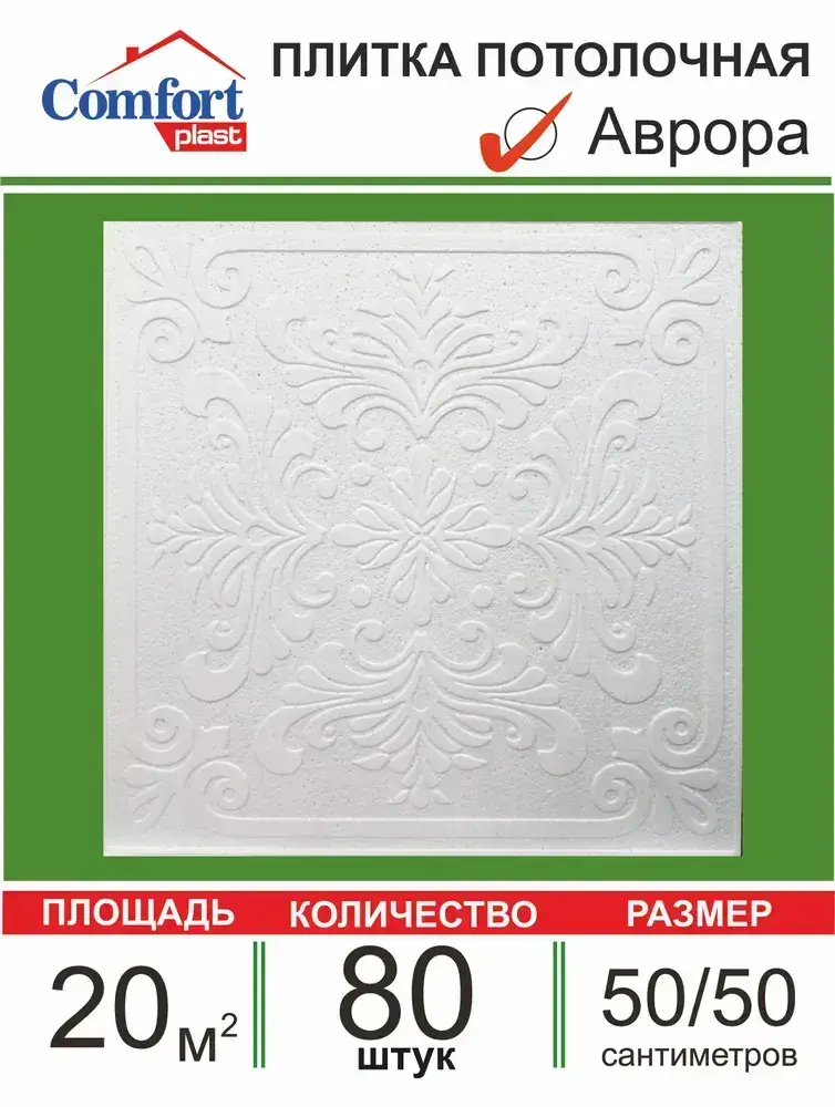 Плита потолочная штампованная "Аврора" 20 кв. м., 80 шт.