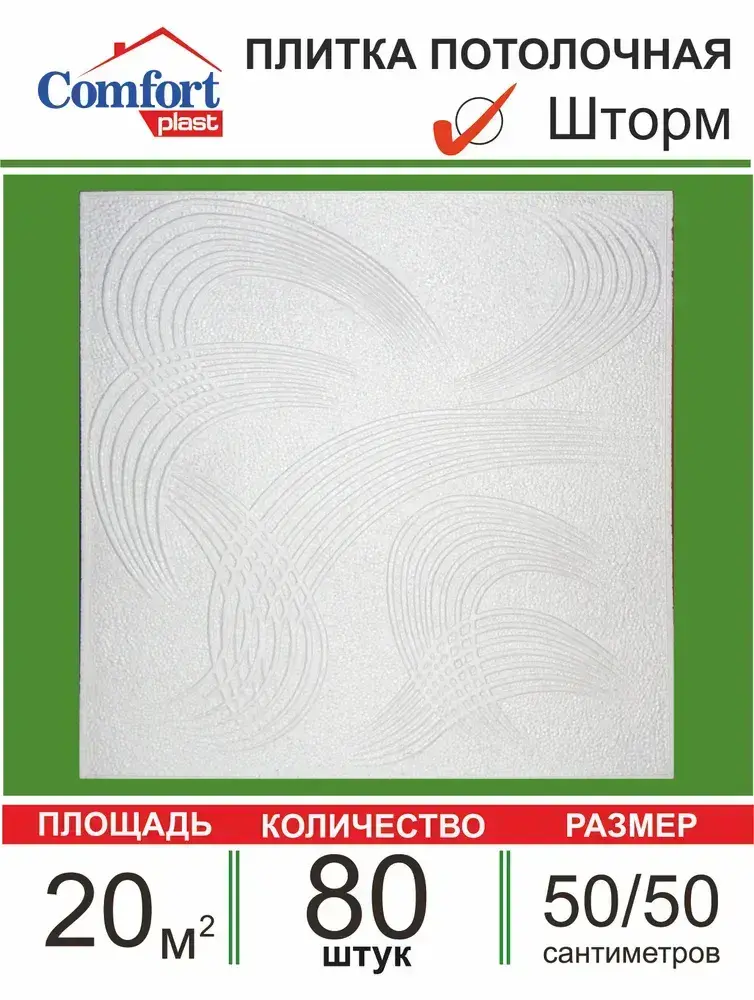 Плита потолочная штампованная "Шторм" 20 кв. м., 80 шт.