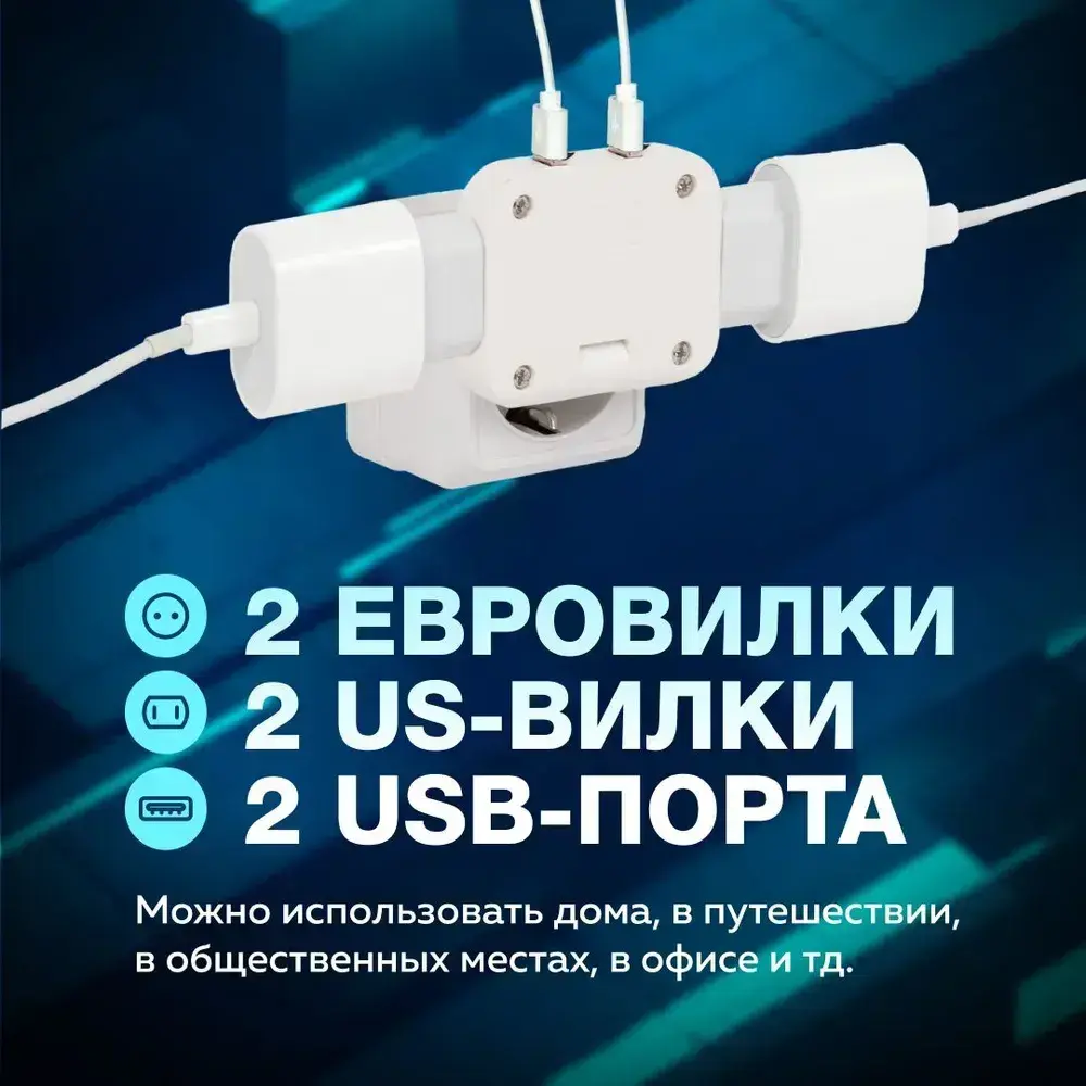 Плоский поворотный тройник для розетки с USB Mconnect разветвитель 180 градусов