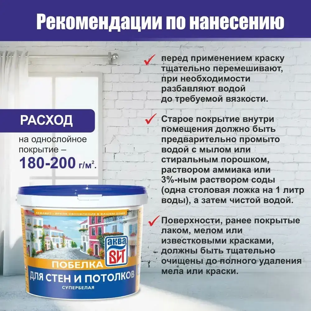 Побелка супербелая для стен и потолков без запаха АкваВит 2,5 кг
