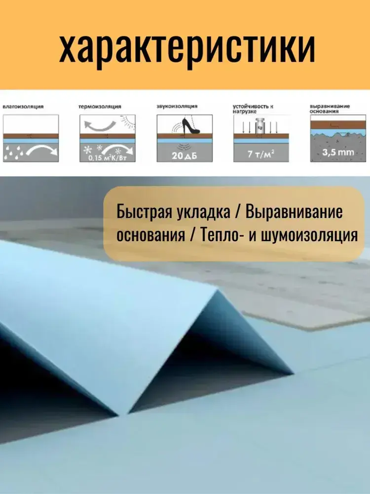 Подложка "Гармошка" для напольных покрытий Солид/Solid 5 мм синяя, 5,25 м2